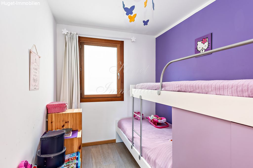 Im Erdgeschoss befindet sich der Wohn- Speisebereich mit Küche, Gästetoilette und kleinem Patio,- im ersten Stock verteilen sich 3 Schlafzimmer und ein Duschbad. Die Sonnenterrasse lädt ein, den Sonnenuntergang über der Bucht von Alcudia zu geniessen.