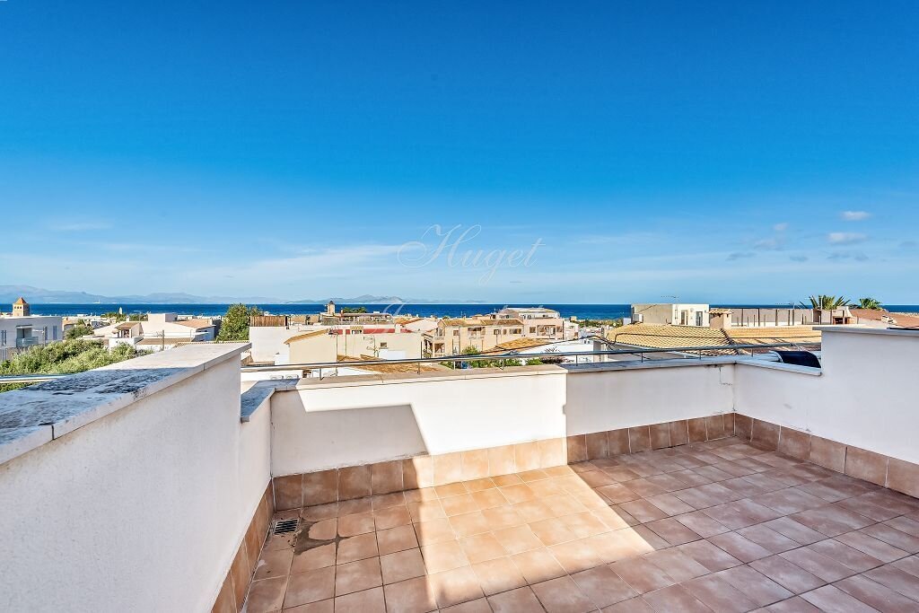 Das gemütliche und schicke Reihenhaus in einer kleinen 5er-Einheit besticht durch seine gute Bauqualität und seine tolle Sicht von der Dachterrasse über Colonia de Sant Pere und die Bucht von Alcudia.